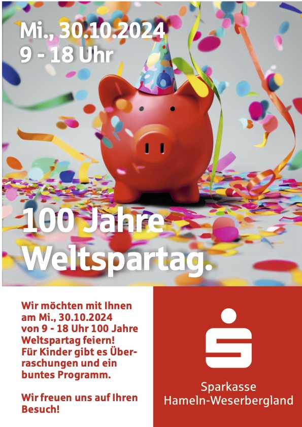 Am 30.10.2024 findet der Weltspartag statt. Dieses Jahr zum 100. Mal.
